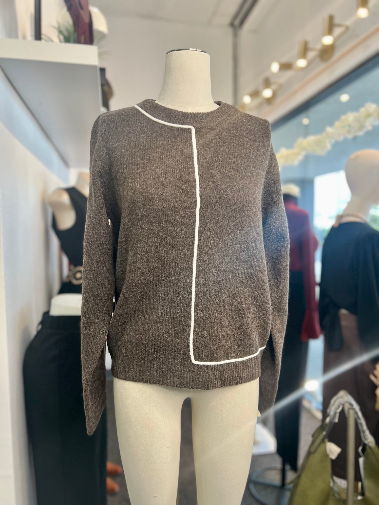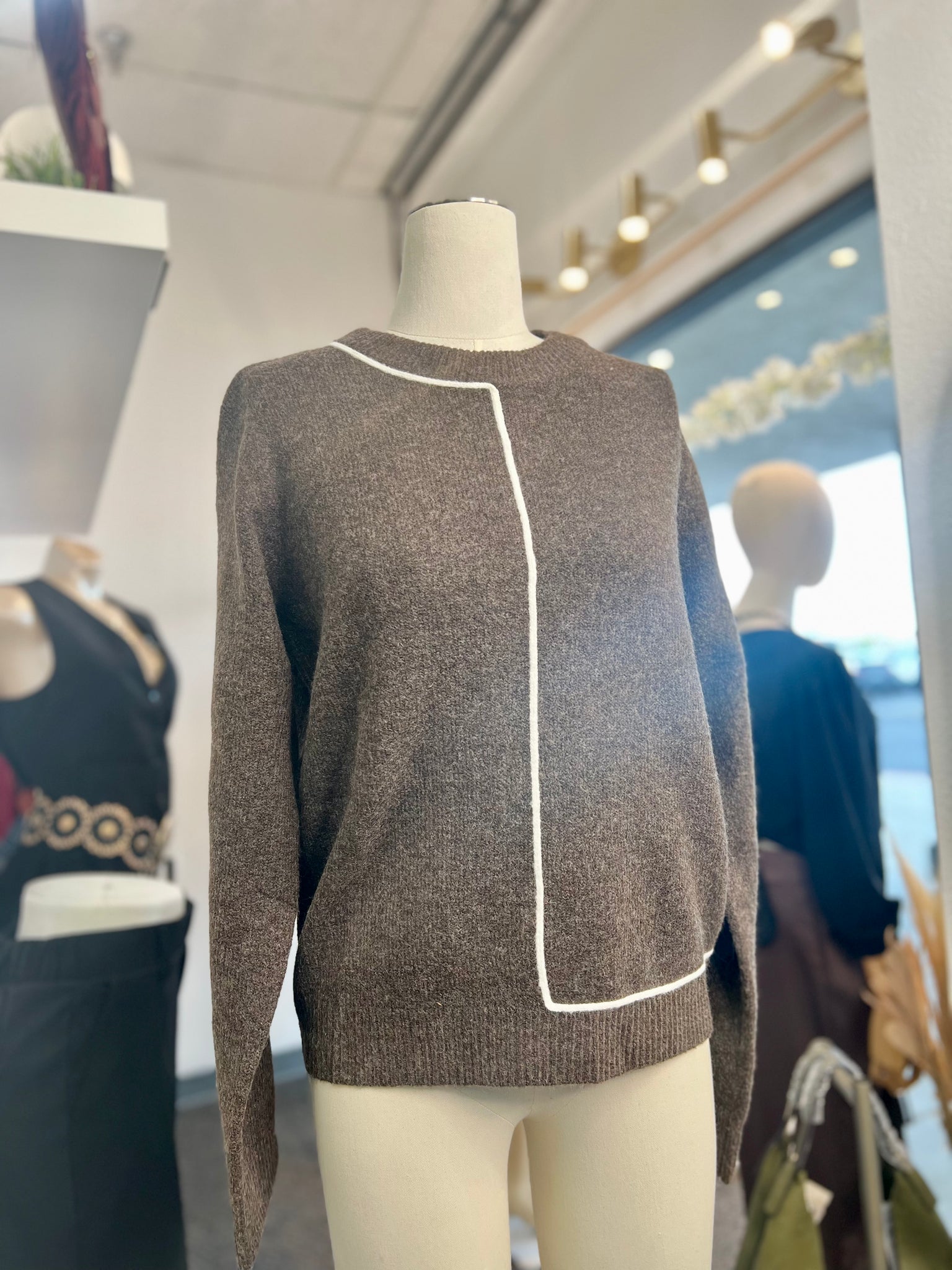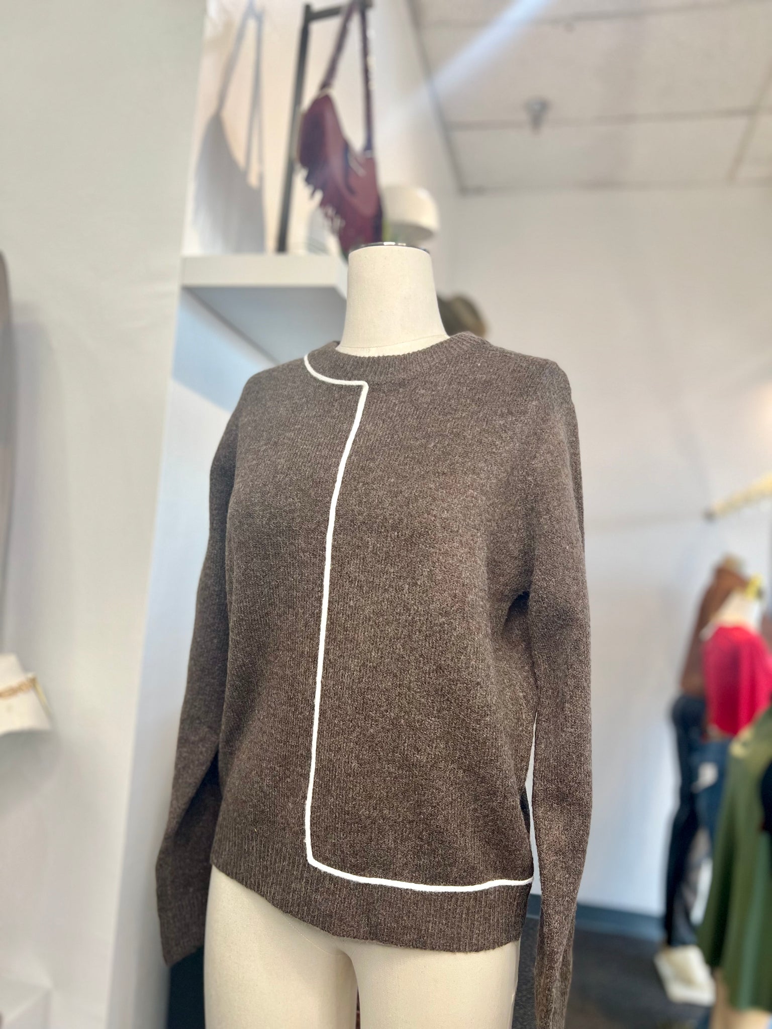 This Vanessa Expresso sweater features a classic round neck and long sleeves, crafted from a soft wool blend with acrylic for added durability and comfort. Its lightweight yet warm fabric makes it ideal for layering in cooler weather, ensuring both style and coziness throughout the day.