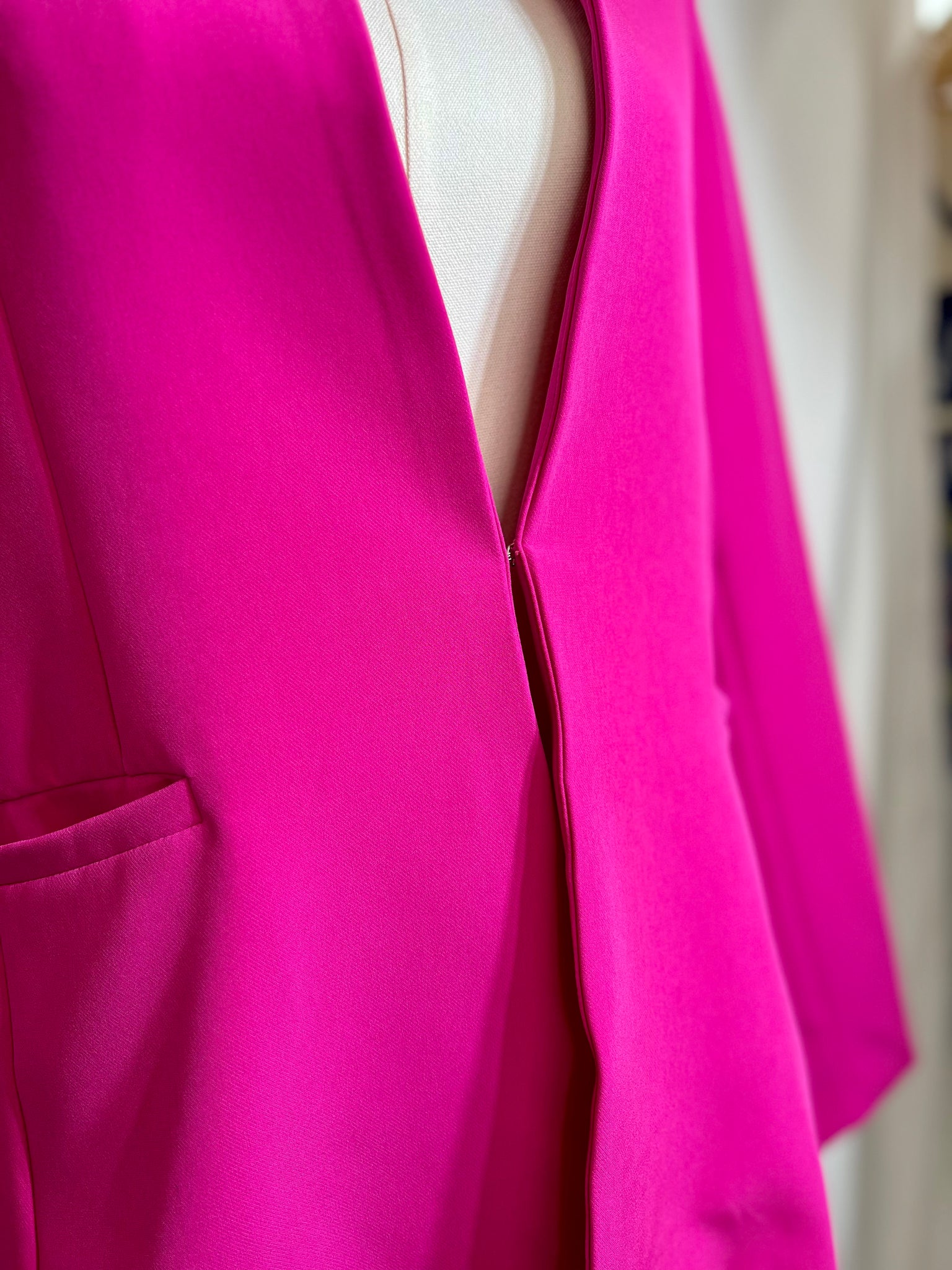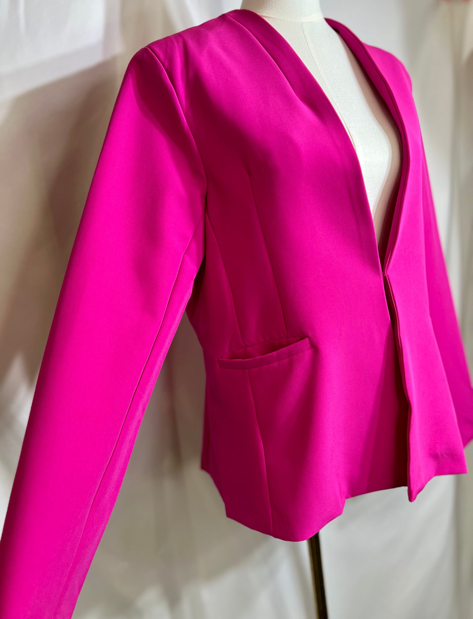 Add a pop of color to your wardrobe with the Brianda Hot Pink Curvy Blazer! Featuring a sleek metal clip closure and two functional side pockets, this blazer combines style and practicality. Designed true to size with a flattering fit for curvy figures, it’s perfect for turning heads while keeping you comfortable. Brighten up any outfit with this playful, bold blazer!