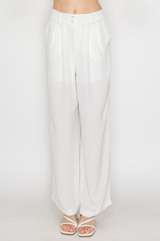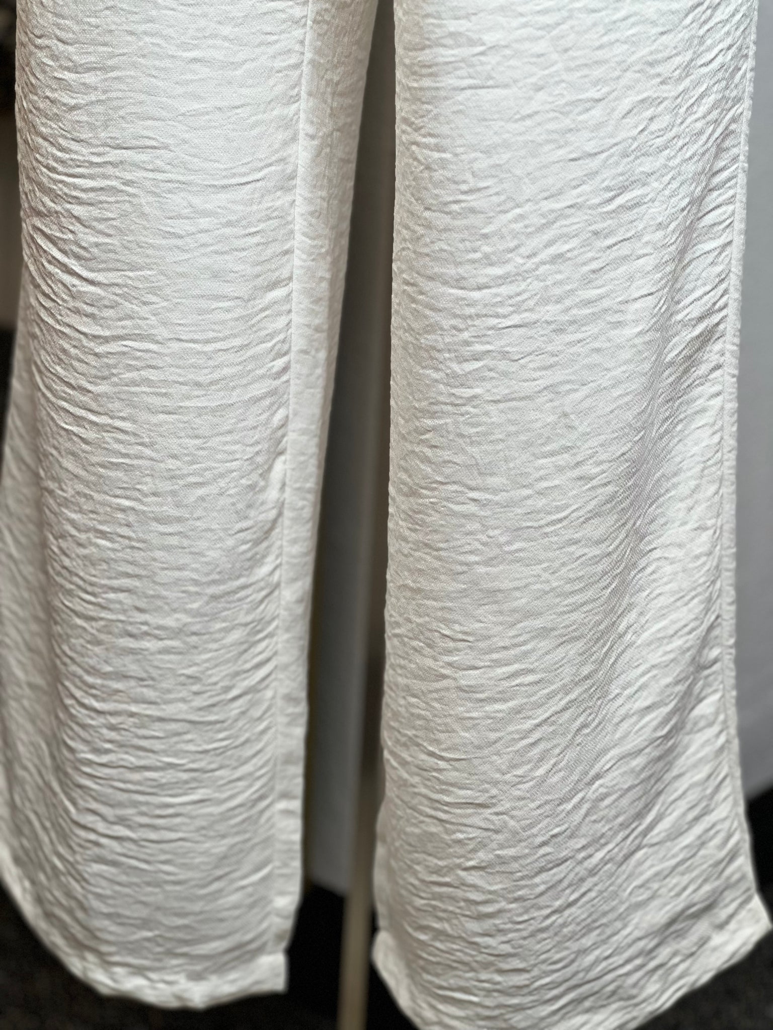 Step out in style with the Brianna Wide Leg Trousers, available in classic white or sleek black. Featuring two handy side pockets for your essentials and two chic back pockets for added flair, these trousers combine function and fashion. Crafted from fresh, breathable material with a stretchy waistband, they promise comfort and freedom of movement all day long. Perfect for playful days or relaxed evenings!