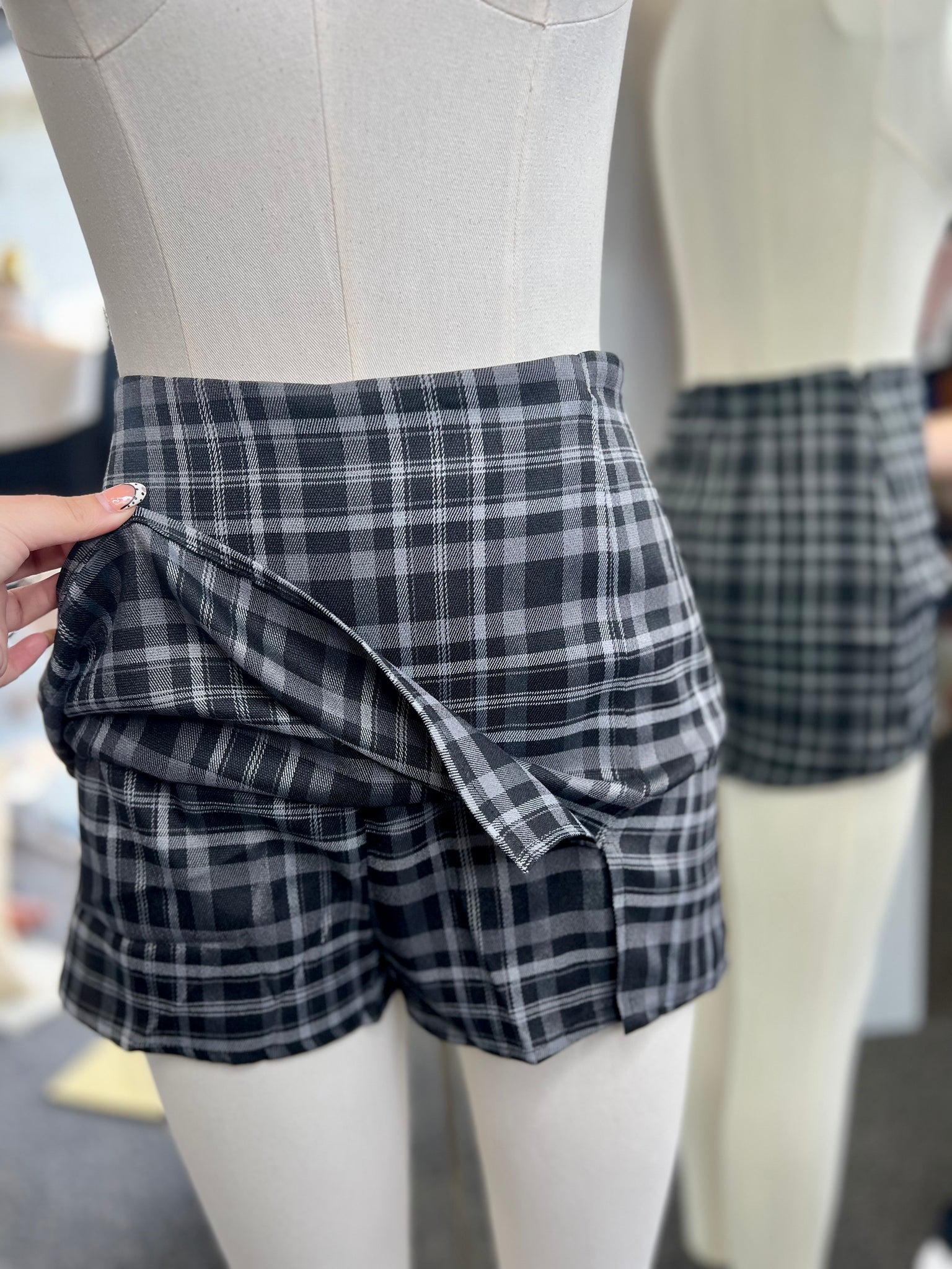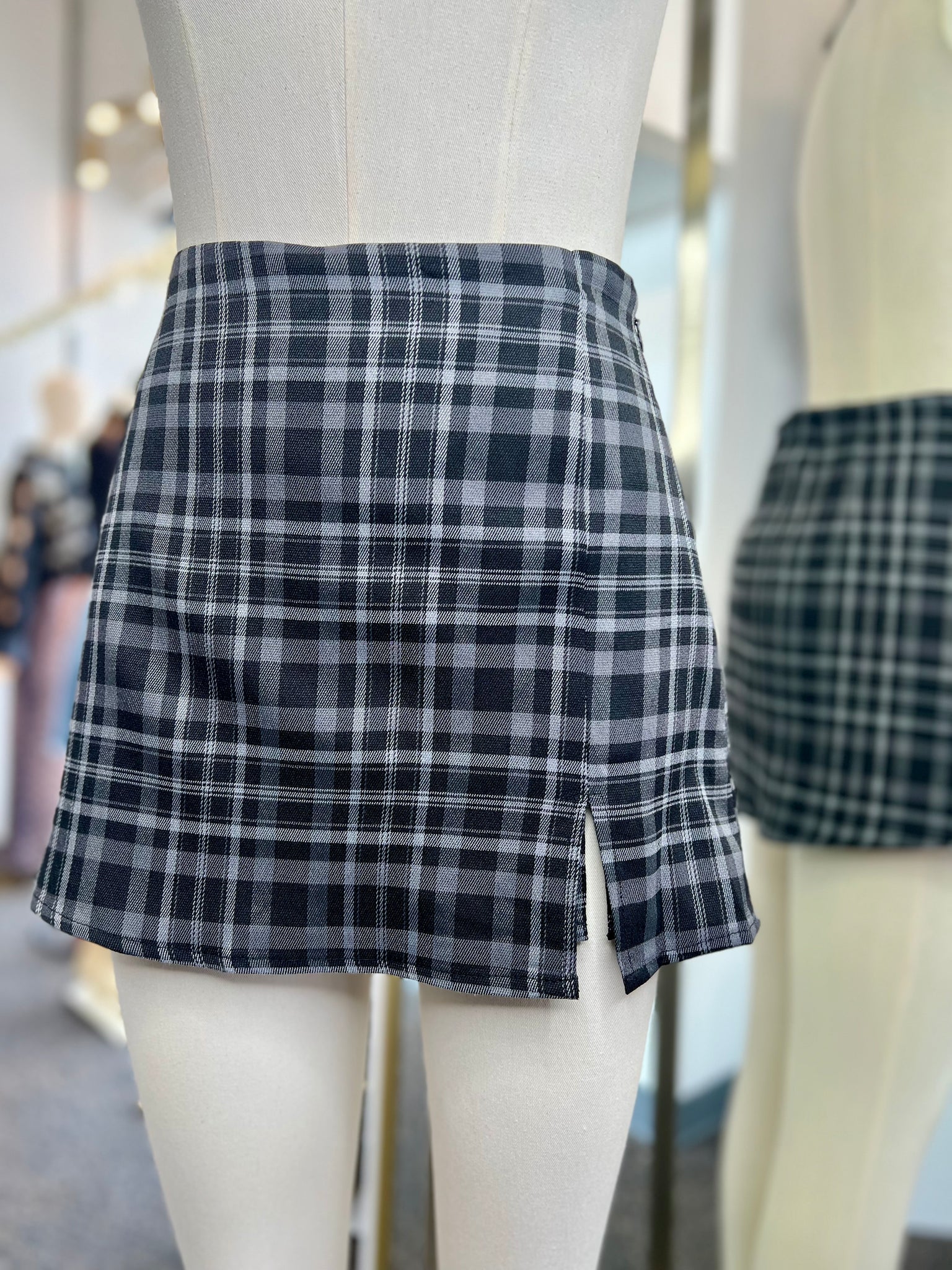 Paris Plaid Slit Front Side Zipper Stretchy Mini Skort