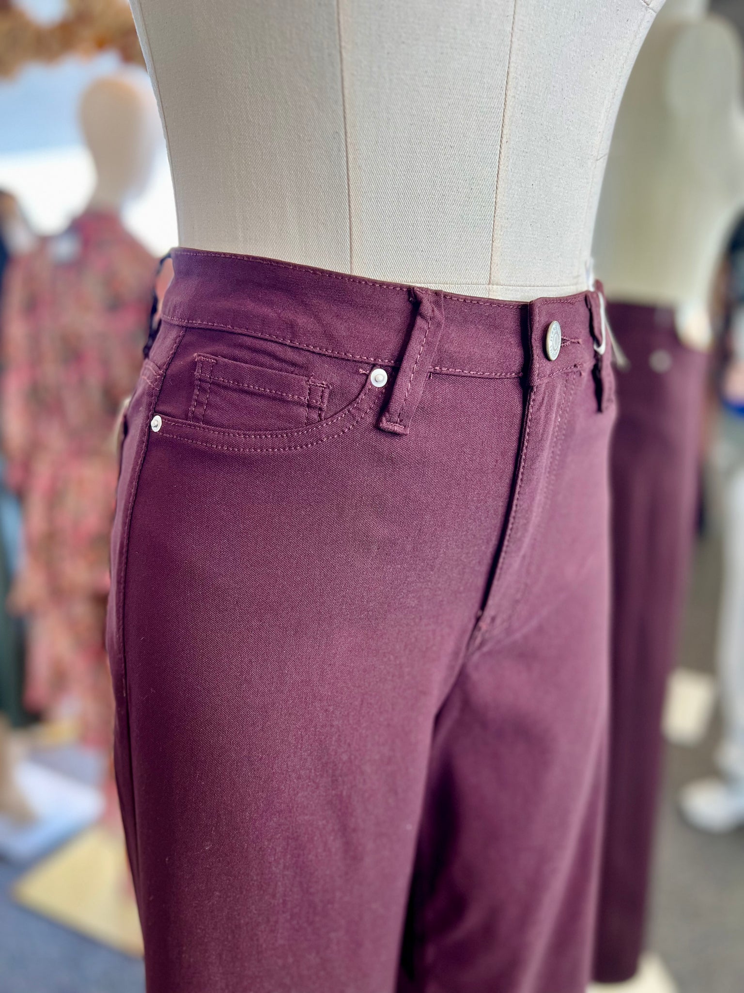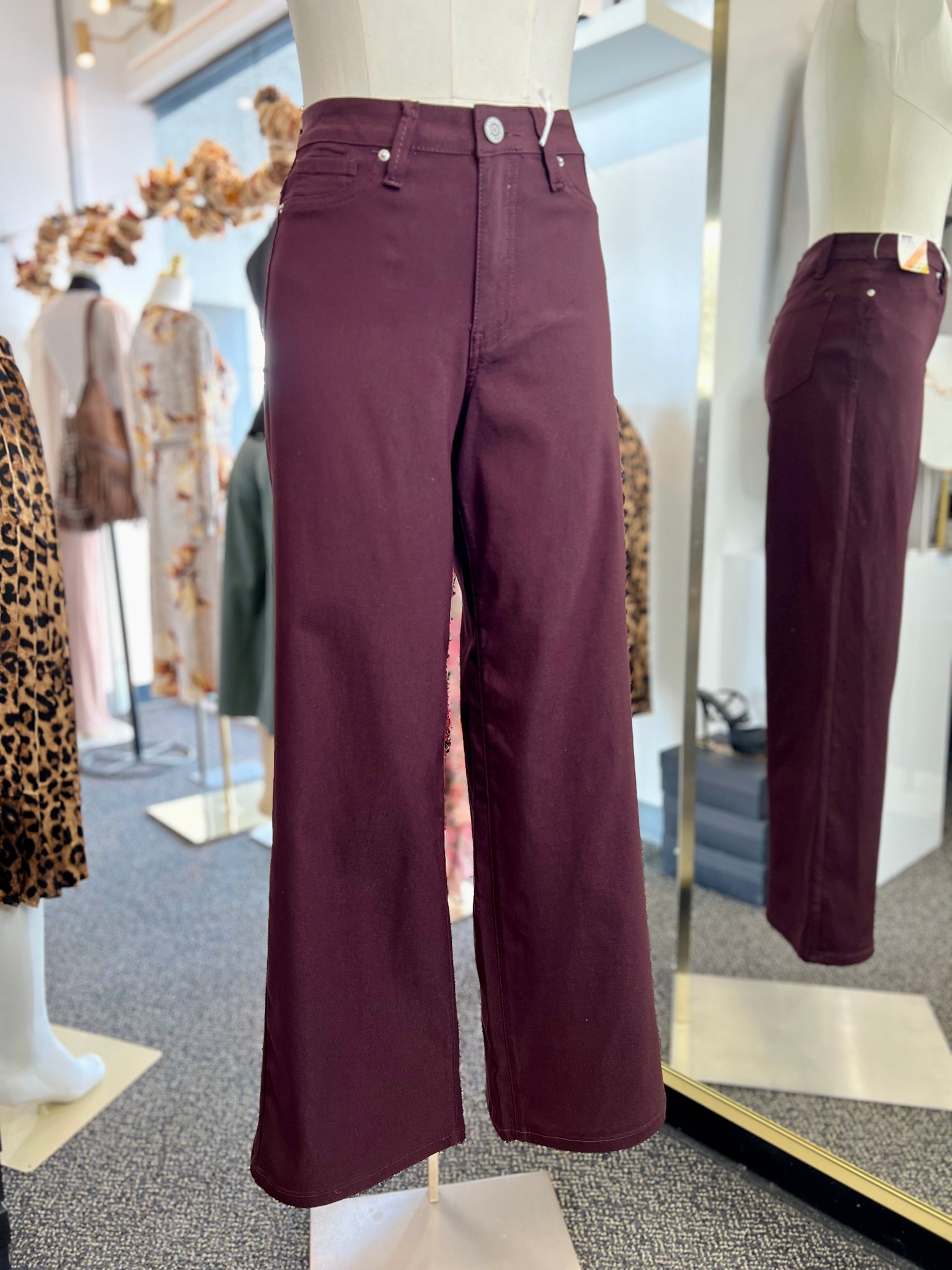 Embrace bold confidence in the Romina Wide Leg Button Up Jeans. These statement-making bottoms feature a flattering wide-leg silhouette that commands attention, paired with a sleek hidden zipper and classic button-up front for effortless style. Crafted with stretchy fabric, they move with you while maintaining their sharp, structured look. Available in a rich wine color that exudes sophistication and edge. Perfect for those ready to make a fashion statement without compromising on comfort.