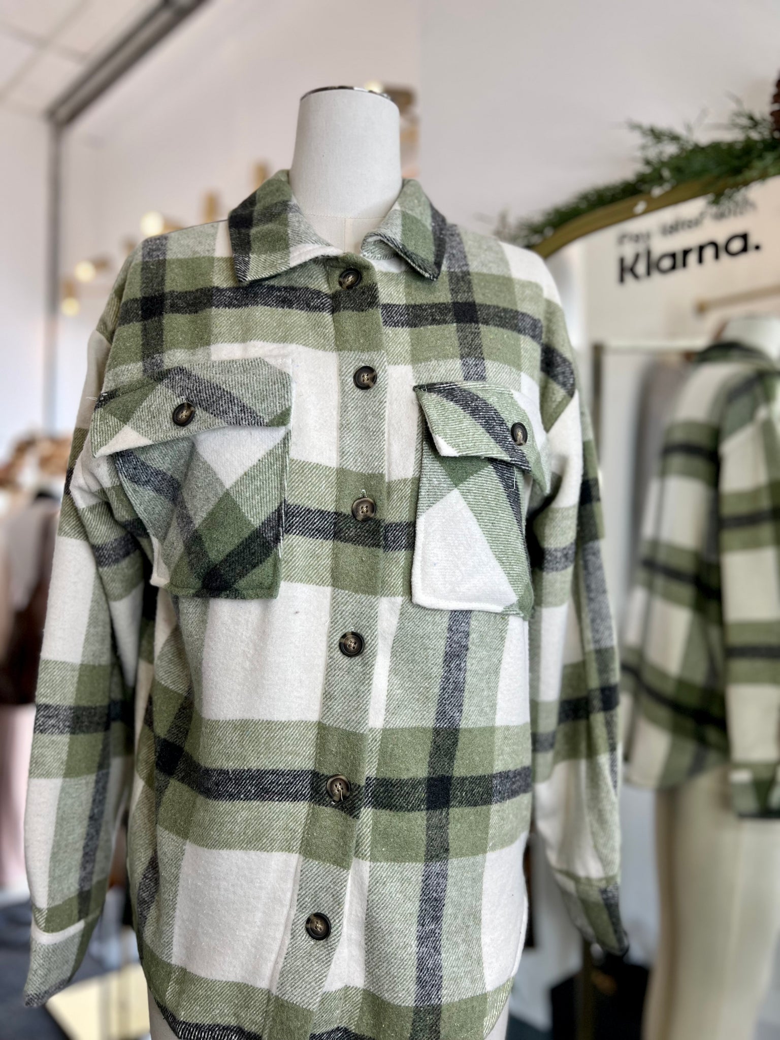 Wrap yourself in cozy vibes with this oversized olive plaid flannel that's basically a warm hug you can button up. The relaxed fit is perfect for layering or going solo, while those functional pockets mean your hands finally have somewhere to chill. Whether you're heading out for coffee or settling in for a lazy weekend, this flannel delivers effortless style with serious comfort. A closet essential that works as hard as you do.