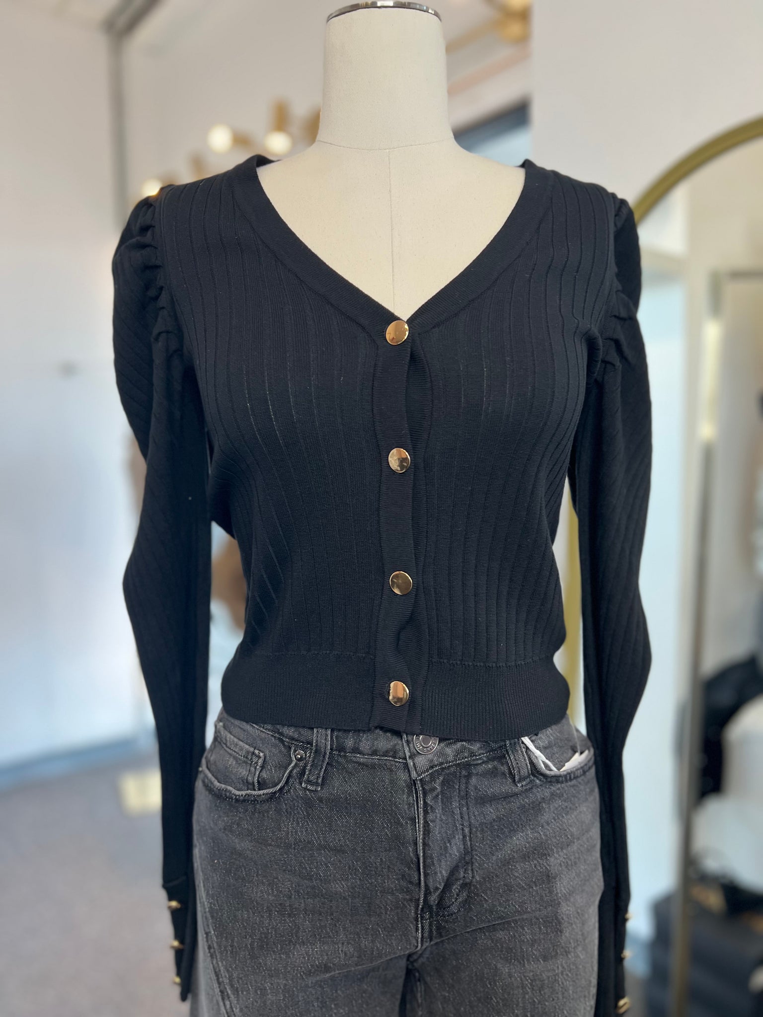 BUTTON DOWN PUFF SLEEVE SWEATER CARDIGAN