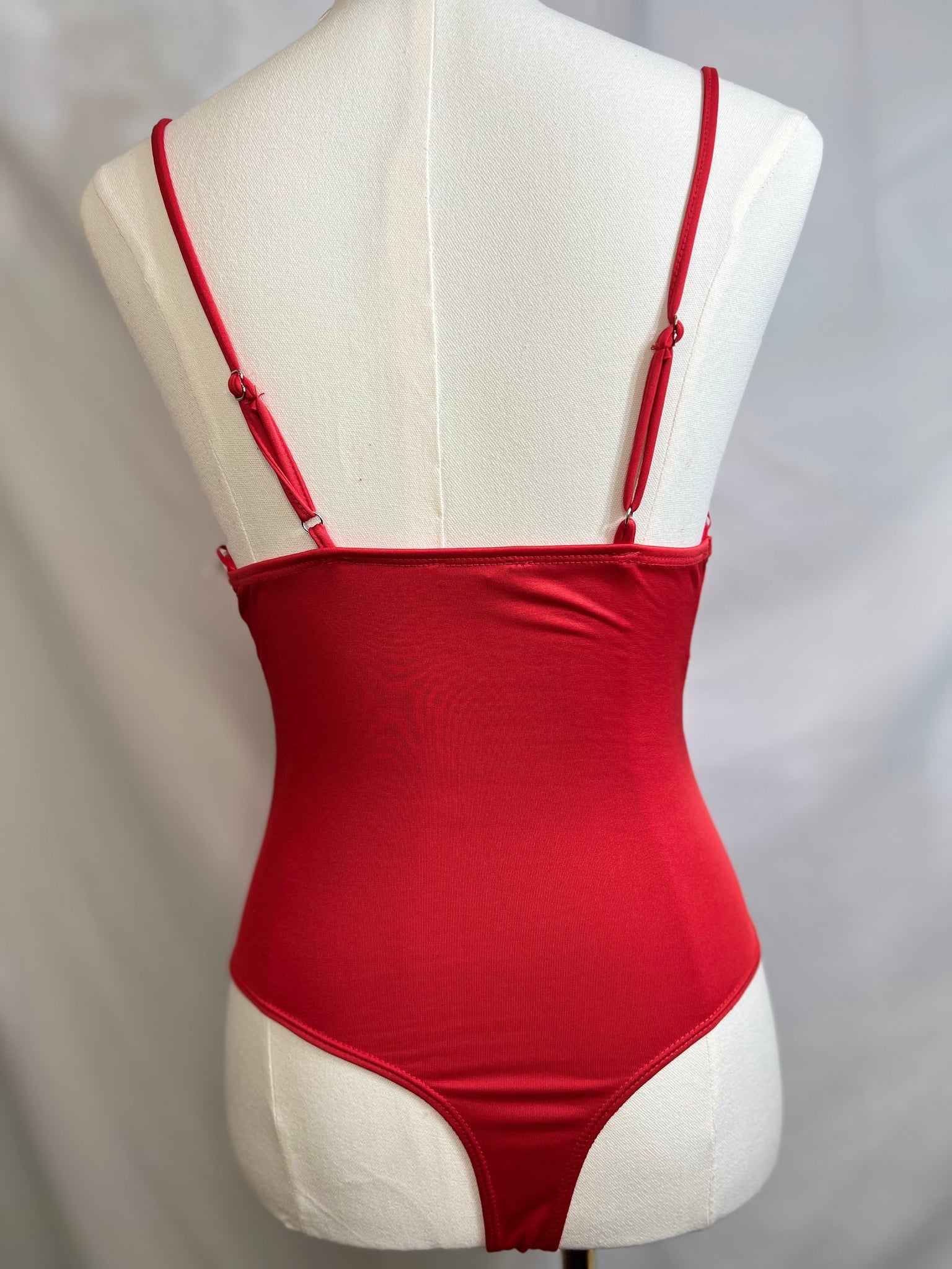 Slip into the Viviana Red Silky Spaghetti Strap Bodysuit and feel the playful charm of its silky, stretchy fabric that moves with you. The adjustable spaghetti straps let you customize your fit, while the vibrant solid red color adds a bold pop to your look. Flirty rushing on the sides creates a fun, textured detail that’s perfect for turning heads wherever you go.