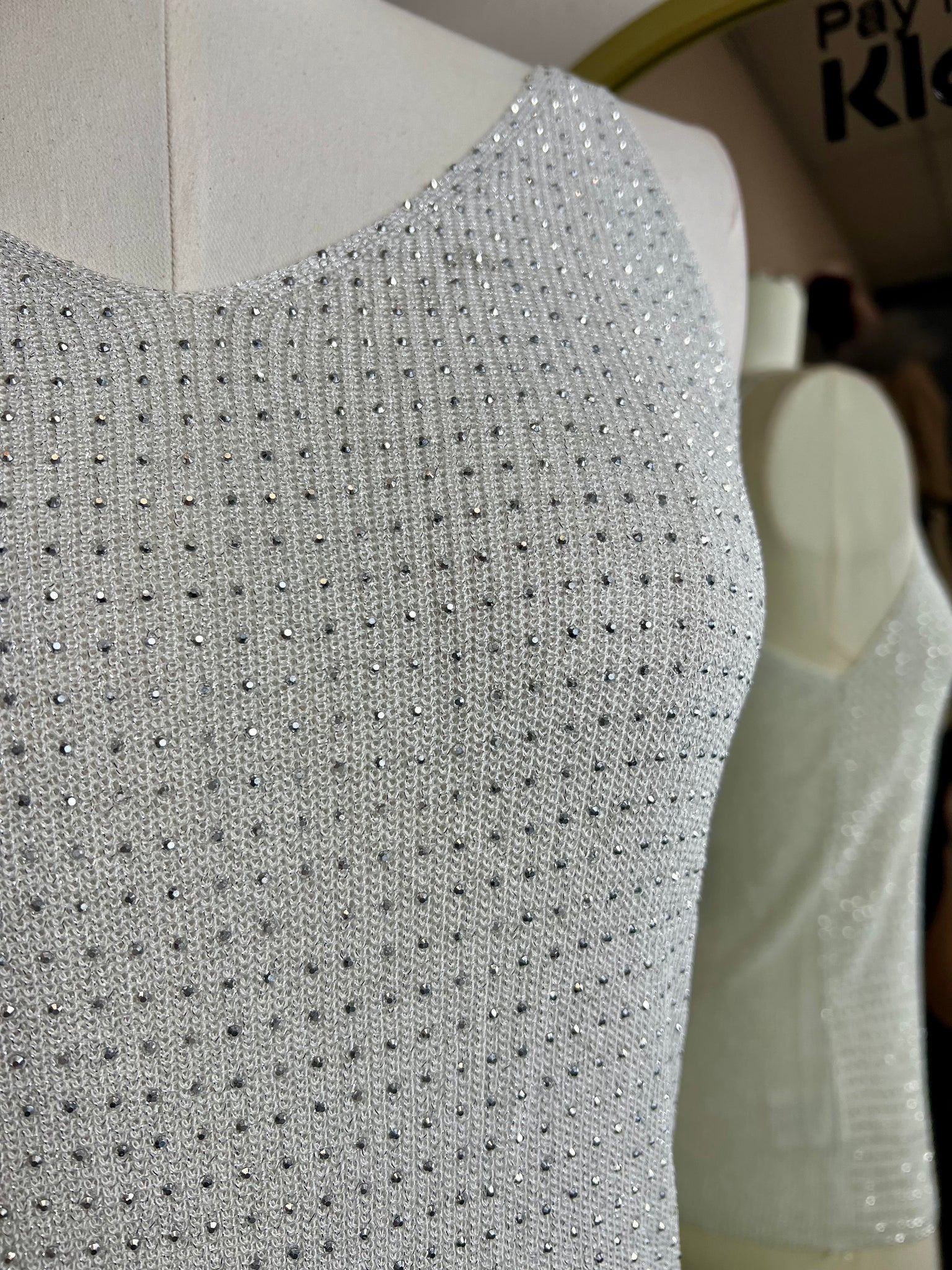 Elevate your wardrobe with the Destiny Tank Top, available in classic black or crisp white. Crafted from a comfortable blend of 70% rayon and 30% polyester, this top features elegant rhinestone detailing that adds subtle sparkle. The flattering V-neck design enhances sophistication, making it perfect for versatile styling from day to night.