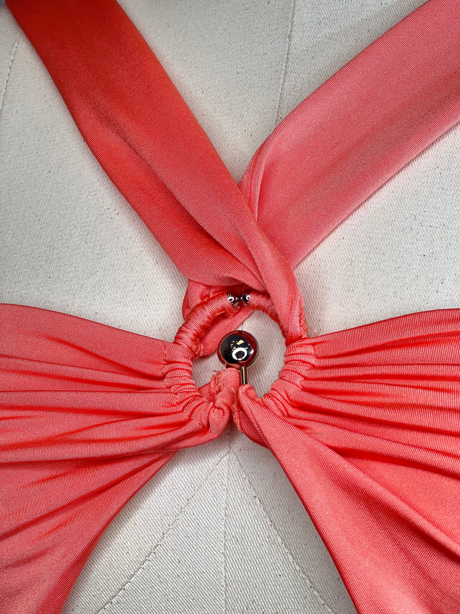 Marla Black or Coral Ring Halter Stretchy Crop Top