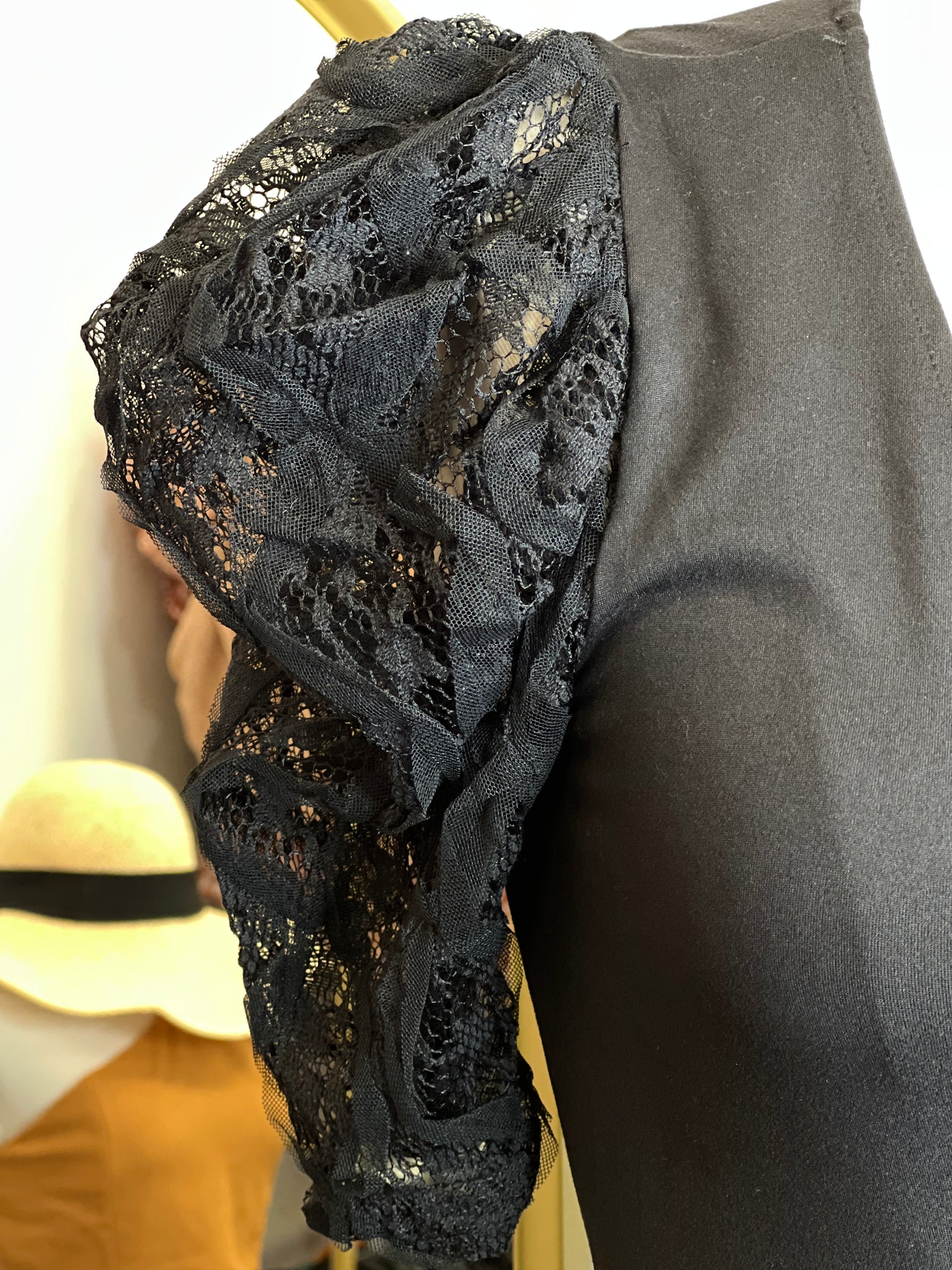 Add a flirty twist to your wardrobe with the Leslie Black Front Criss Cross Bodysuit Top. Featuring playful puff 3/4 sleeves with delicate lace detailing, this stretchy bodysuit hugs your curves comfortably. The front criss-cross design adds a fun, eye-catching touch perfect for day or night looks.