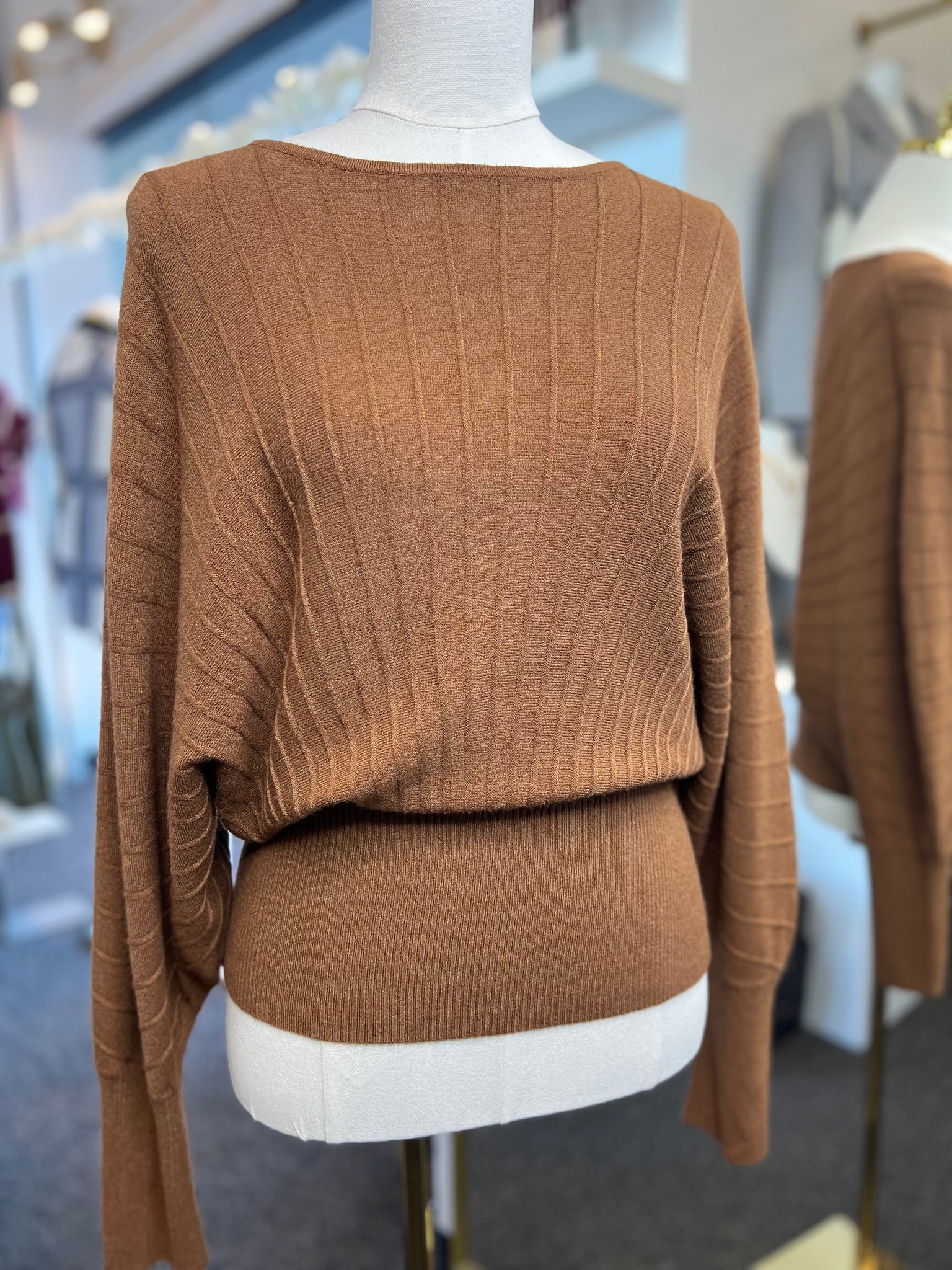 Lyra Beige or Caramel Long Sleeve Ribbed Sweater